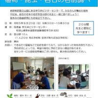 みなさんが集めた植物や昆虫、岩石の標本の名前を各分野の先生と一緒に調べましょう。