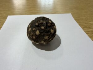 自然塾の磯遊びに参加された方から「これは何?」とのご質問。地玉の浜で見つけたそうです。自然公園指導員に確認したところ、「ニガカシュウ(ヤマノイモ科)」のむかごとのことでした。磯の生物のほか、さまざまな漂着物に目を向けてみるのも楽しそうですね。地玉の浜では流れ着いたヤシやオニグルミ、ゴバンノアシなどの実が見られるそうです。