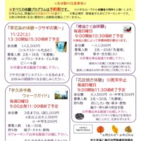 10月26日開催のイベント「森の散歩とクラフト」の申込みが定員に達しましたので、締め切らせて頂きます。